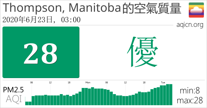 Thompson, Manitoba, 加拿大的空氣污染指數是優