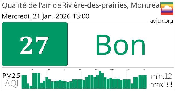 La qualité de l'air à Rivière-des-prairies, Montreal, Canada est Bon