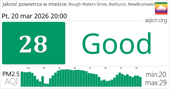 Jakość powietrza w mieście Rough Waters Drive, Bathurst, NewBrunswick, Kanada jest Good