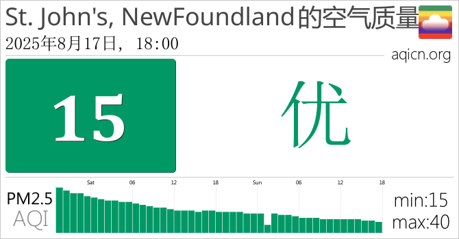 St. John's, NewFoundland, 加拿大的空气污染指数是优
