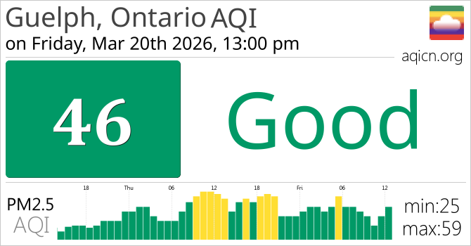 Guelph, Ontario, Canada Air Quality is Good
