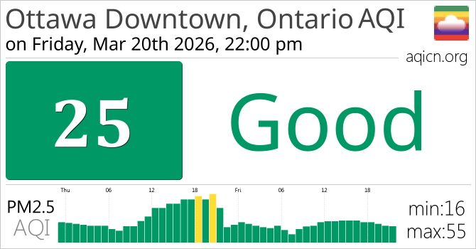 Ottawa Downtown, Ontario, Canada Air Quality is Good