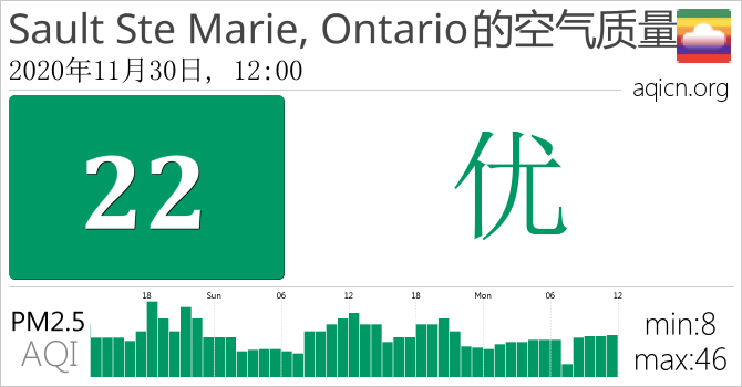 Sault Ste Marie, Ontario, 加拿大的空气污染指数是优