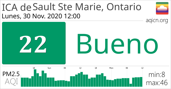 La calidad del aire de Sault Ste Marie, Ontario, Canadá es Bueno