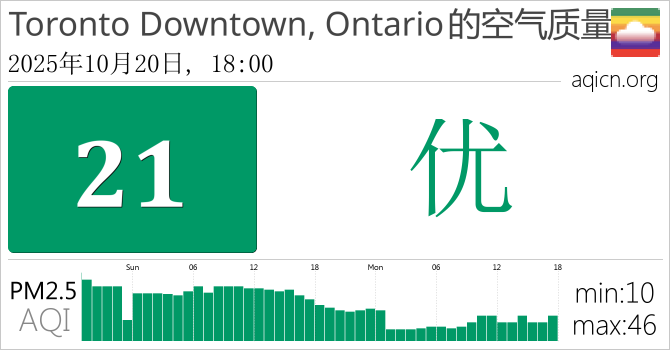 Toronto Downtown, Ontario, 加拿大的空气污染指数是优