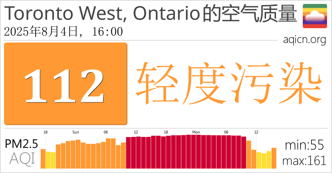 Toronto West, Ontario, 加拿大的空气污染指数是轻度污染