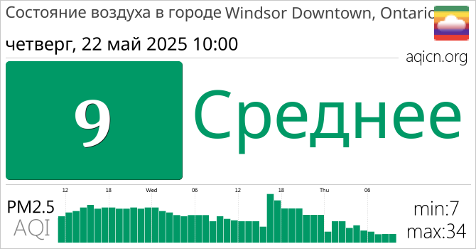 Качество воздуха в Windsor Downtown, Ontario, Канада является Среднее