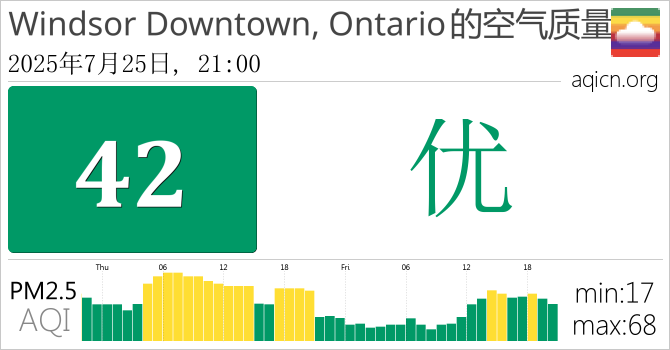 Windsor Downtown, Ontario, 加拿大的空气污染指数是优
