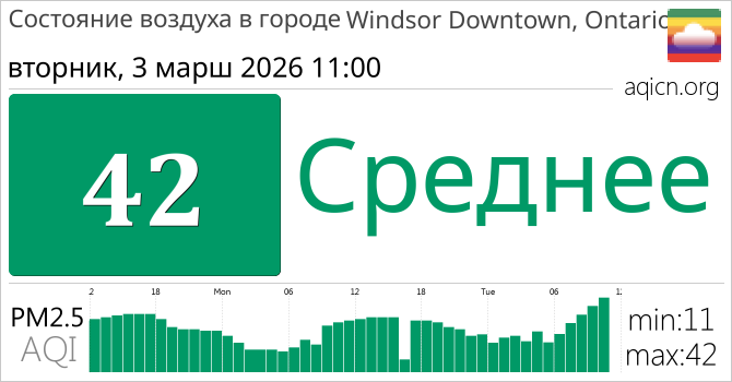Качество воздуха в Windsor Downtown, Ontario, Канада является Среднее
