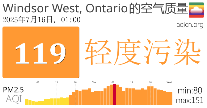 Windsor West, Ontario, 加拿大的空气污染指数是轻度污染