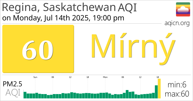 Kvalita ovzduší ve městě Regina, Saskatchewan, Canada je Mírný