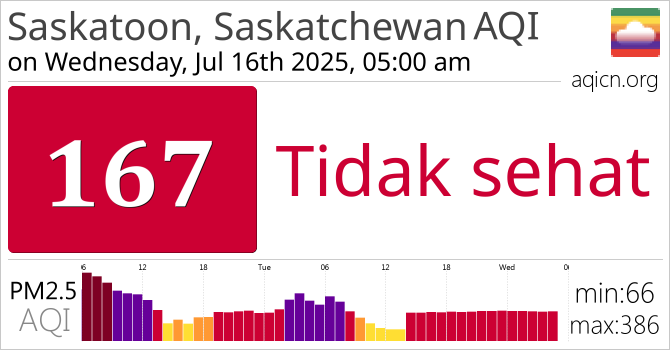 Kualitas Udara di Saskatoon, Saskatchewan, Canada adalah Tidak sehat