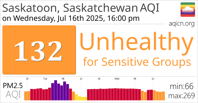 Saskatoon, Saskatchewan, Canada Air Quality is Unhealthy for Sensitive Groups
