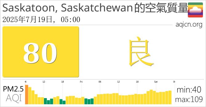 Saskatoon, Saskatchewan, 加拿大的空氣污染指數是良