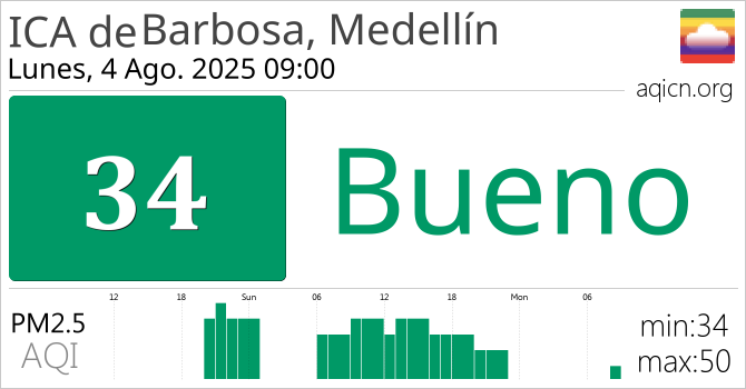 La calidad del aire de Barbosa, Medellín, Colombia es Bueno