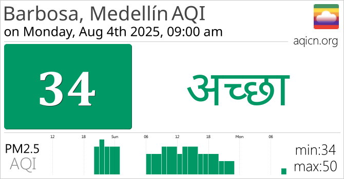 Barbosa, Medellín, Colombia की वायु गुणवत्ता अच्छा है