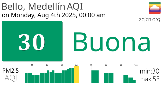 La qualità dell'aria a Bello, Medellín, Colombia è Buona