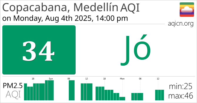 Copacabana, Medellín, Colombia levegőminősége Jó