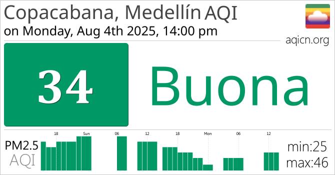 La qualità dell'aria a Copacabana, Medellín, Colombia è Buona