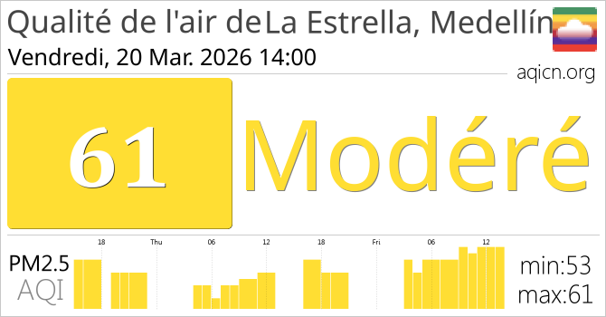 La qualité de l'air à La Estrella, Medellín, Colombie est Modéré