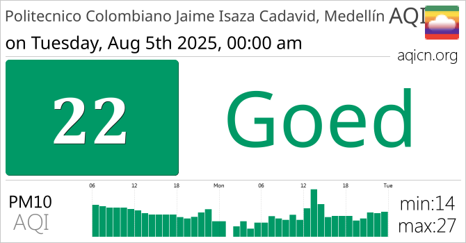De luchtkwaliteit van Politecnico Colombiano Jaime Isaza Cadavid, Medellín, Colombia is Goed