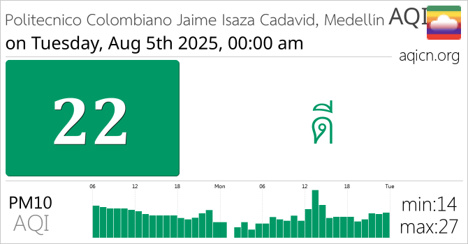 คุณภาพอากาศของ Politecnico Colombiano Jaime Isaza Cadavid, Medellín, Colombia อยู่ที่ ดี