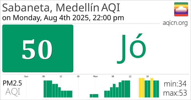 Sabaneta, Medellín, Colombia levegőminősége Jó