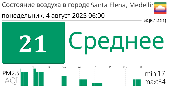 Качество воздуха в Santa Elena, Medellín, Колумбия является Среднее