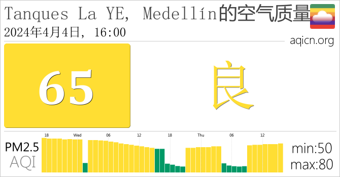 Tanques La YE, Medellín, 哥伦比亚的空气污染指数是良