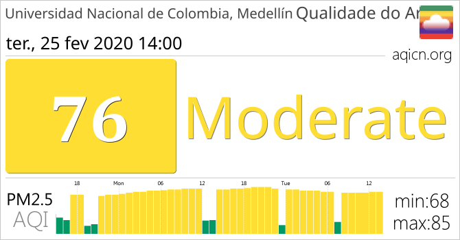 A qualidade do ar em Universidad Nacional de Colombia, Medellín, Colômbia é Moderate