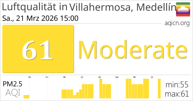 In Villahermosa, Medellín, Kolumbien ist die Luftqualität Moderate