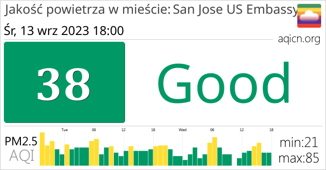 Jakość powietrza w mieście San Jose US Embassy, Costa Rica jest Good