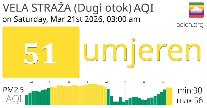 Kvaliteta zraka u gradu VELA STRAŽA (Dugi otok), Croatia je umjeren
