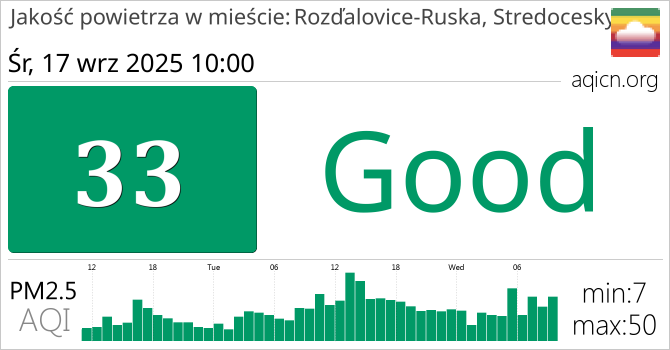 Jakość powietrza w mieście Rozďalovice-Ruska, Stredocesky, CzechRepublic jest Good