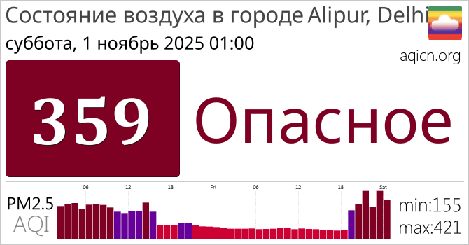 Качество воздуха в Alipur, Delhi, Дели является Опасное