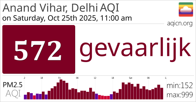 De luchtkwaliteit van Anand Vihar, Delhi, Delhi is gevaarlijk