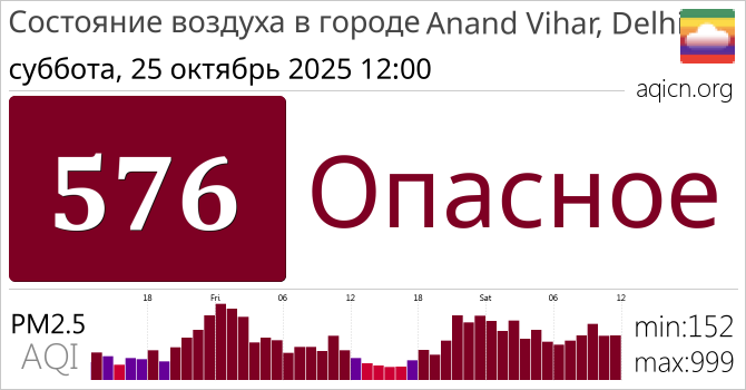 Качество воздуха в Anand Vihar, Delhi, Дели является Опасное