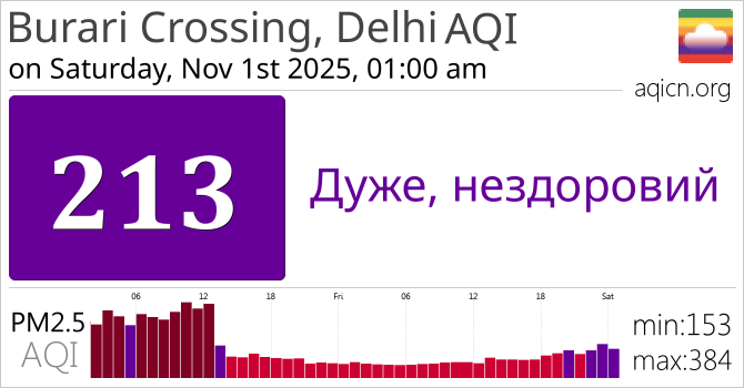 Якість повітря в місті Burari Crossing, Delhi, Delhi становить Дуже, нездоровий
