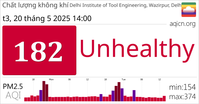 Chất lượng không khí Delhi Institute of Tool Engineering, Wazirpur, Delhi, Delhi Unhealthy