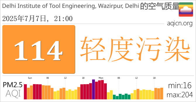 Delhi Institute of Tool Engineering, Wazirpur, Delhi, 德里的空气污染指数是轻度污染