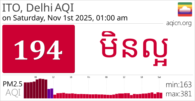 គុណភាពខ្យល់របស់ ITO, Delhi, Delhi គឺ មិនល្អ