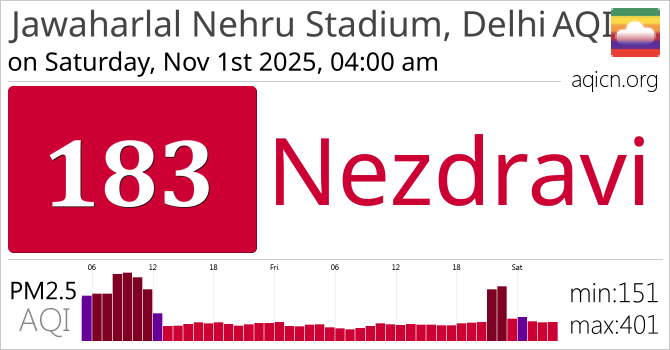 Kvalitet zraka za Jawaharlal Nehru Stadium, Delhi, Delhi je Nezdravi