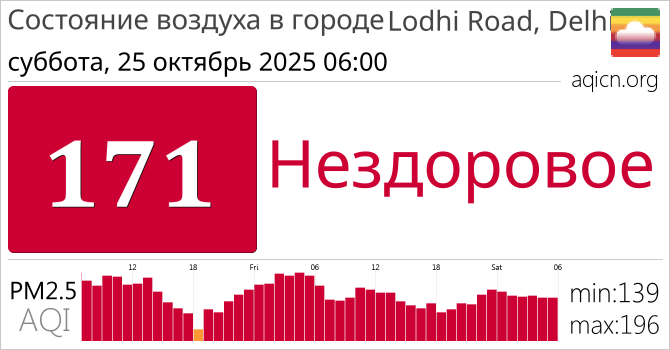 Качество воздуха в Lodhi Road, Delhi, Дели является Нездоровое