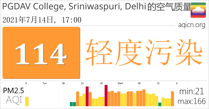 PGDAV College, Sriniwaspuri, Delhi, 德里的空气污染指数是轻度污染