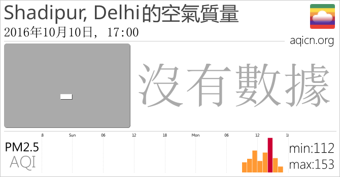 Shadipur, Delhi, 德里的空氣污染指數是沒有數據