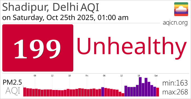 Shadipur, Delhi, Delhi Air Quality is Unhealthy