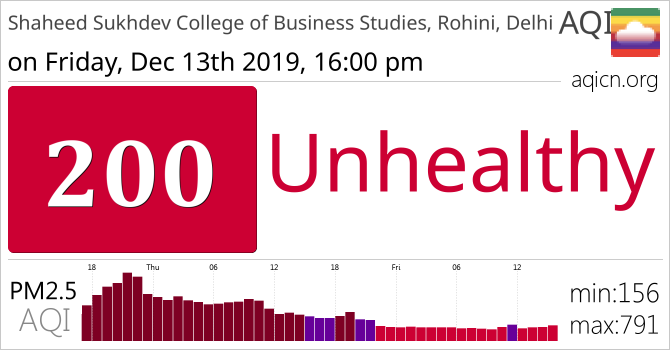 Shaheed Sukhdev College of Business Studies, Rohini, Delhi, Delhi Air Quality is Unhealthy