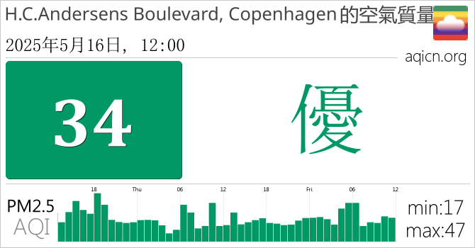 H.C.Andersens Boulevard, Copenhagen, 丹麥的空氣污染指數是優