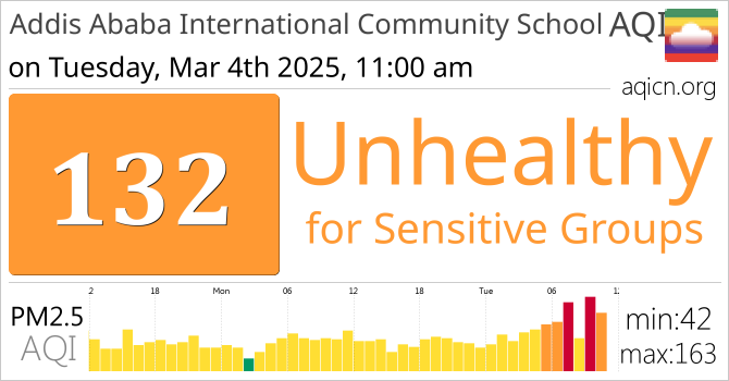 Addis Ababa International Community School, Ethiopia Air Quality is Unhealthy for Sensitive Groups