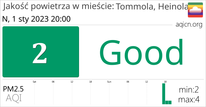 Jakość powietrza w mieście Tommola, Heinola, Finlandia jest Good